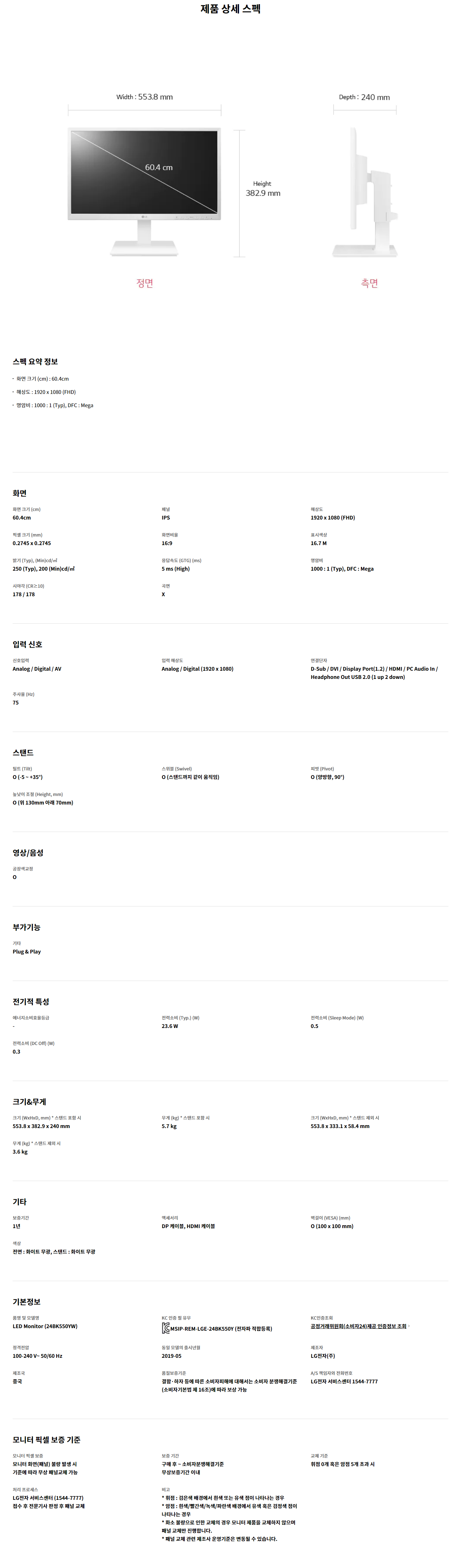 화면크기 : 60.4 ㎝