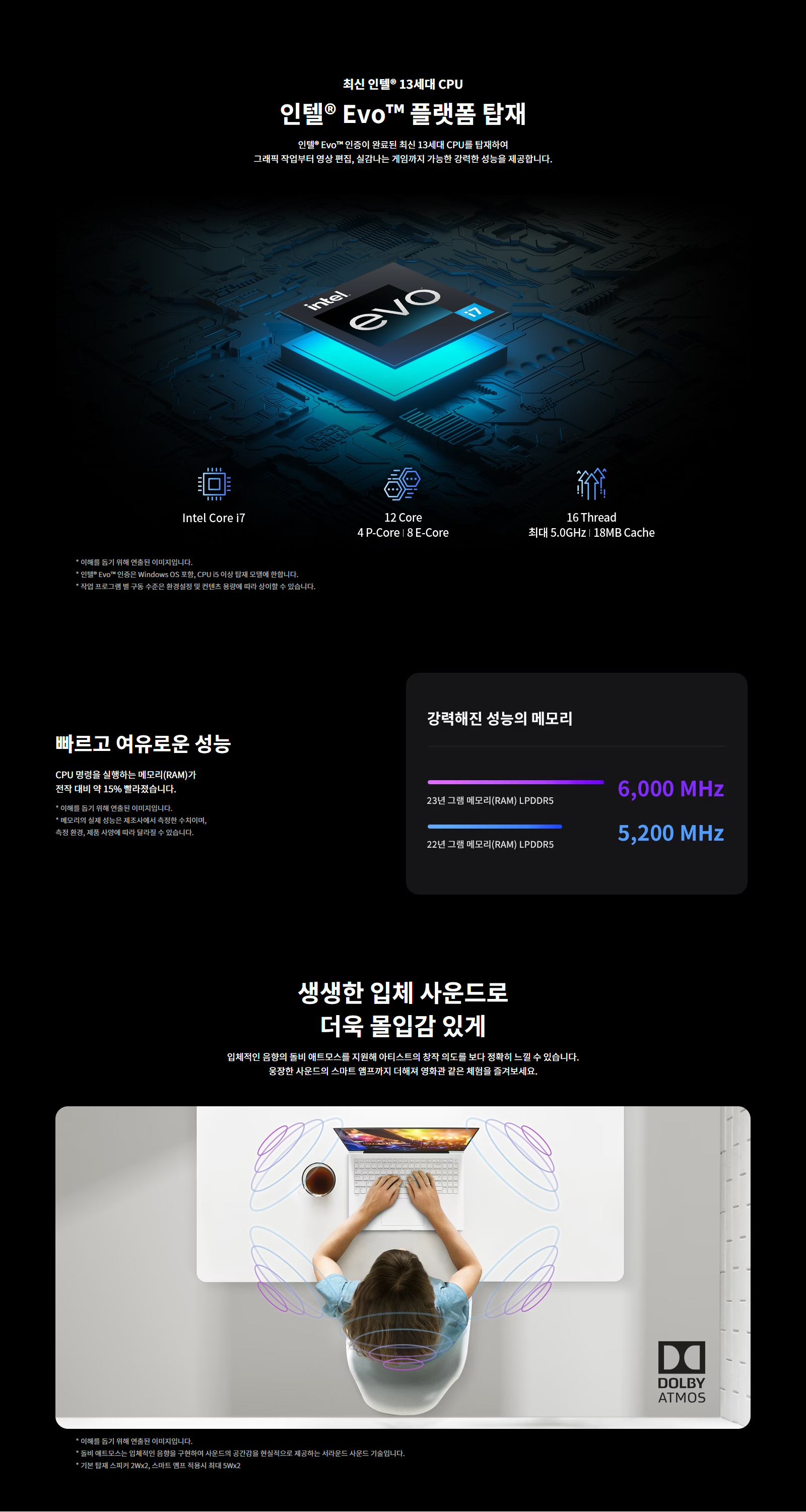 CPU : 인텔® Evo™ 플랫폼 13세대 인텔® 코어™ i7-1360P 프로세서