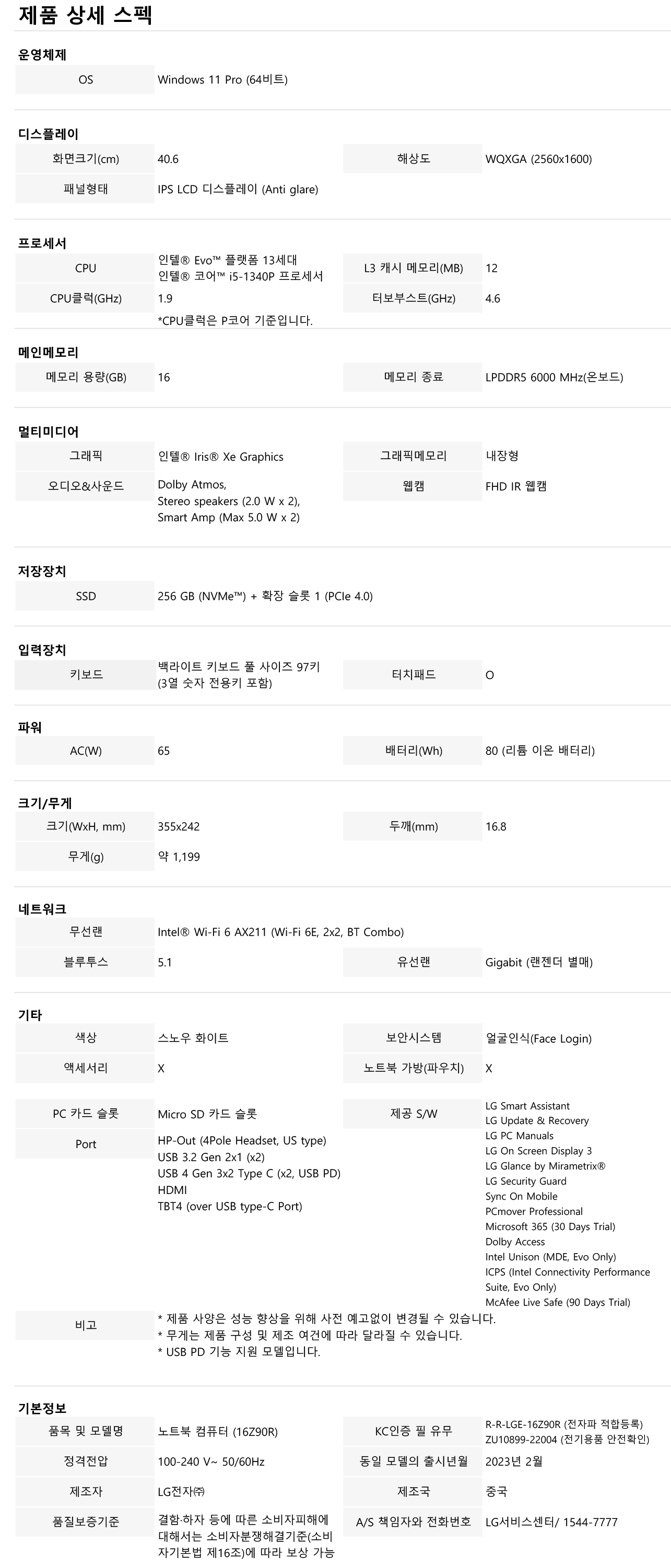 CPU : 인텔® Evo™ 플랫폼 13세대 인텔® 코어™ i5-1340P 프로세서