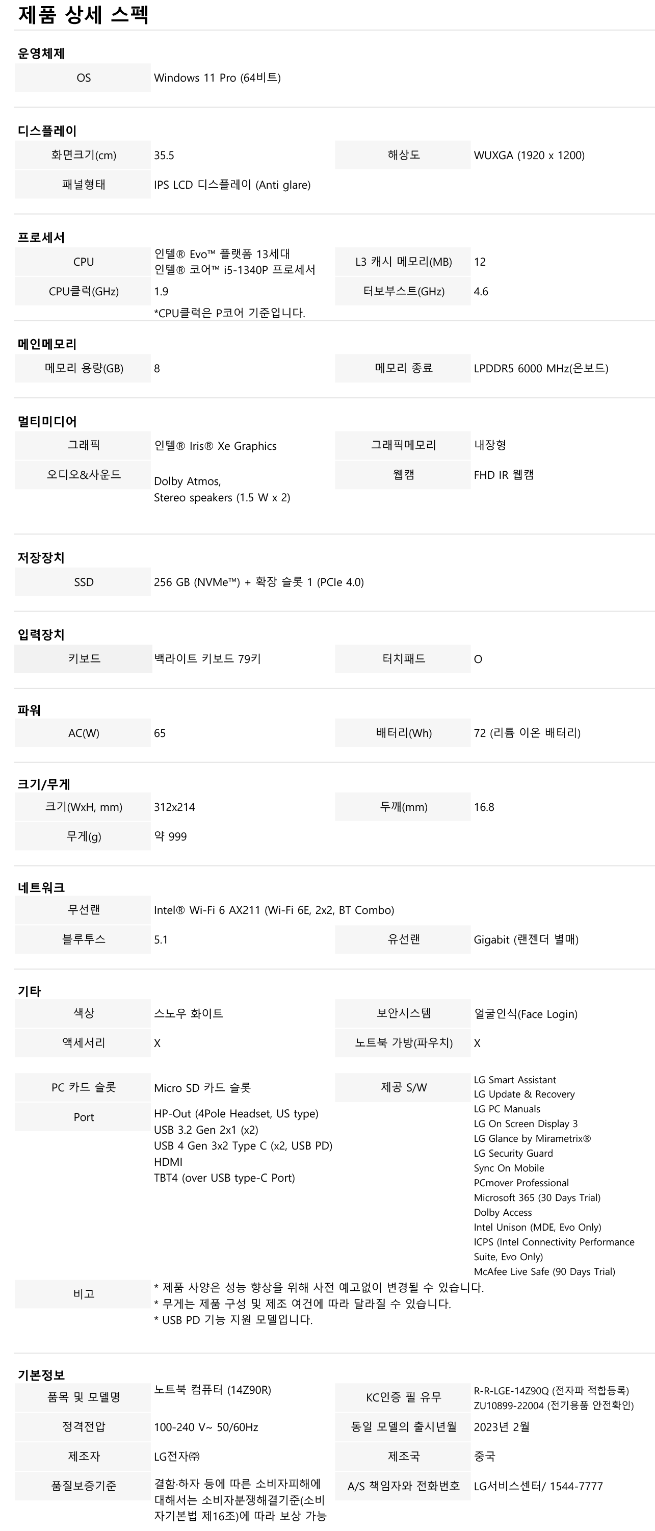 SSD : 256 GB (NVMe™) + 확장 슬롯 1 (PCIe 4.0)