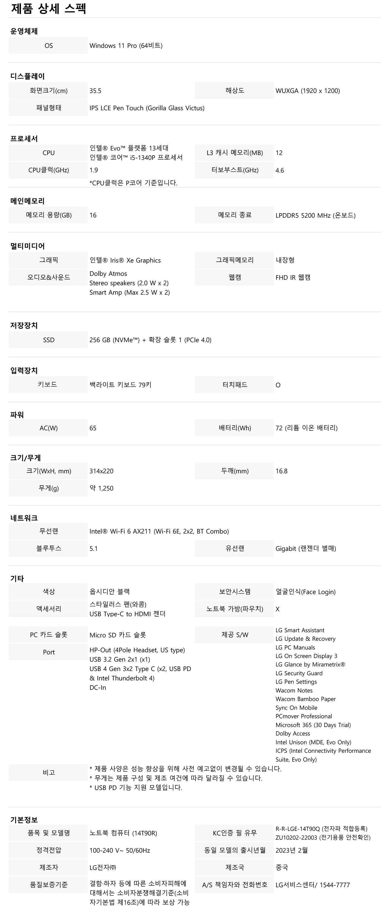 CPU : 인텔® Evo™ 플랫폼 13세대 인텔® 코어™ i5-1340P 프로세서