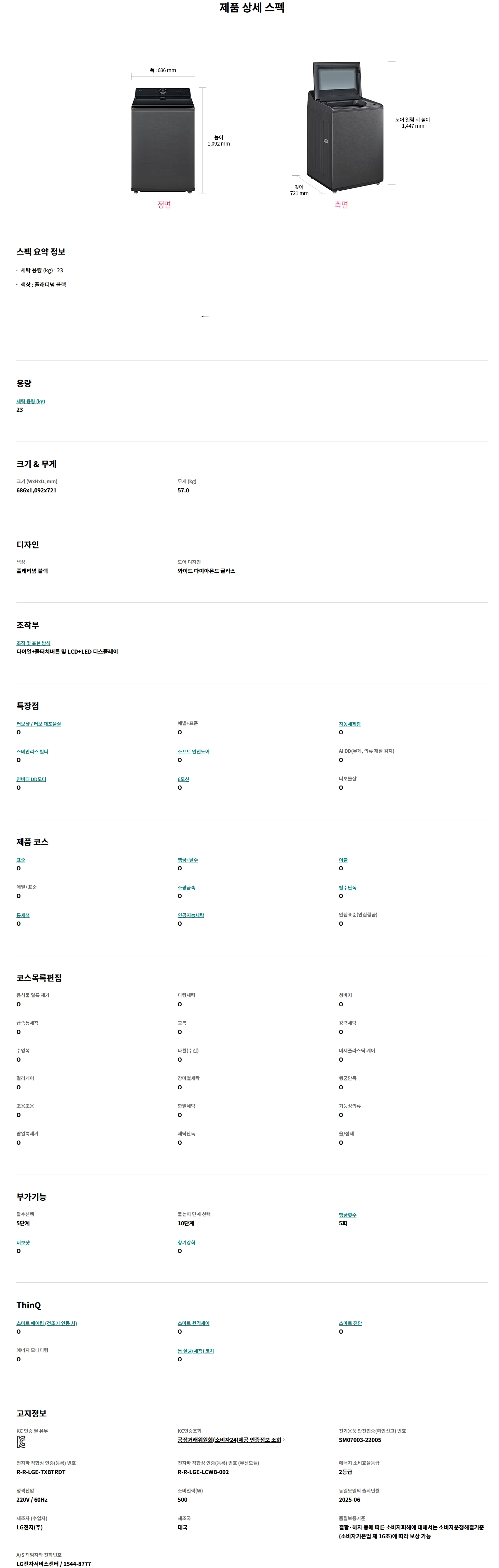 세탁용량 : 23 ㎏