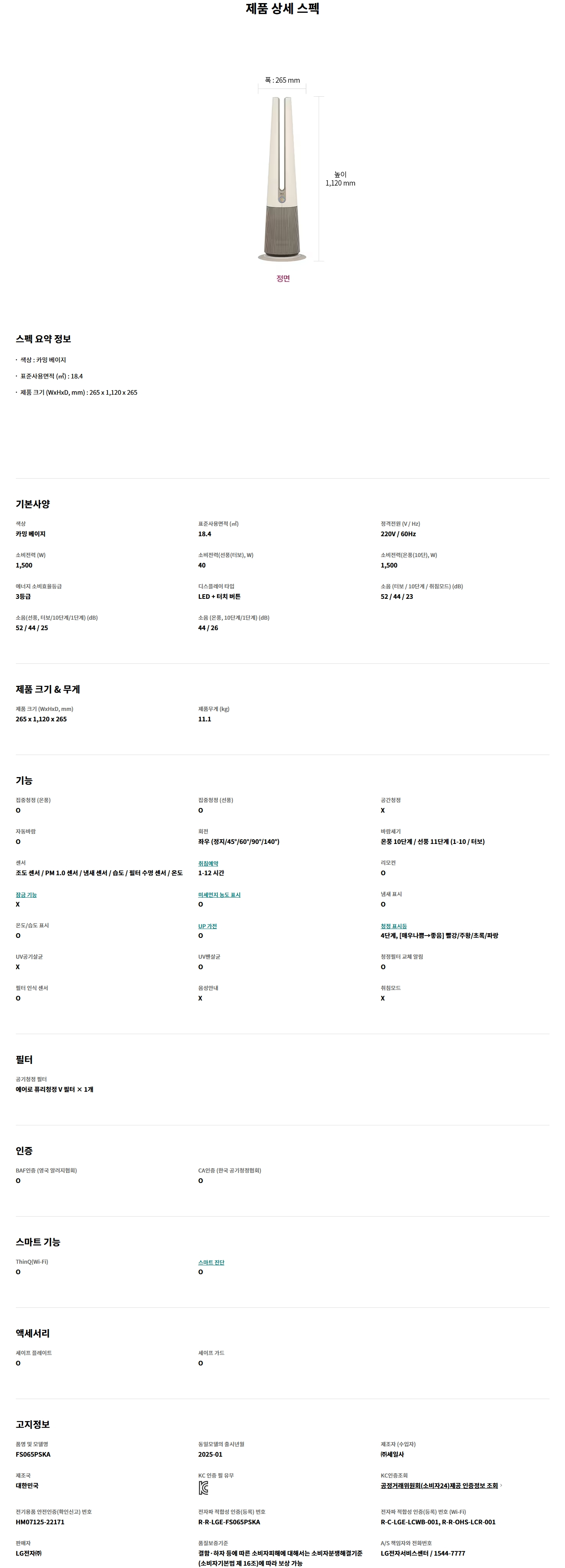 LG 퓨리케어 오브제컬렉션 에어로타워 Hit (온풍 겸용)