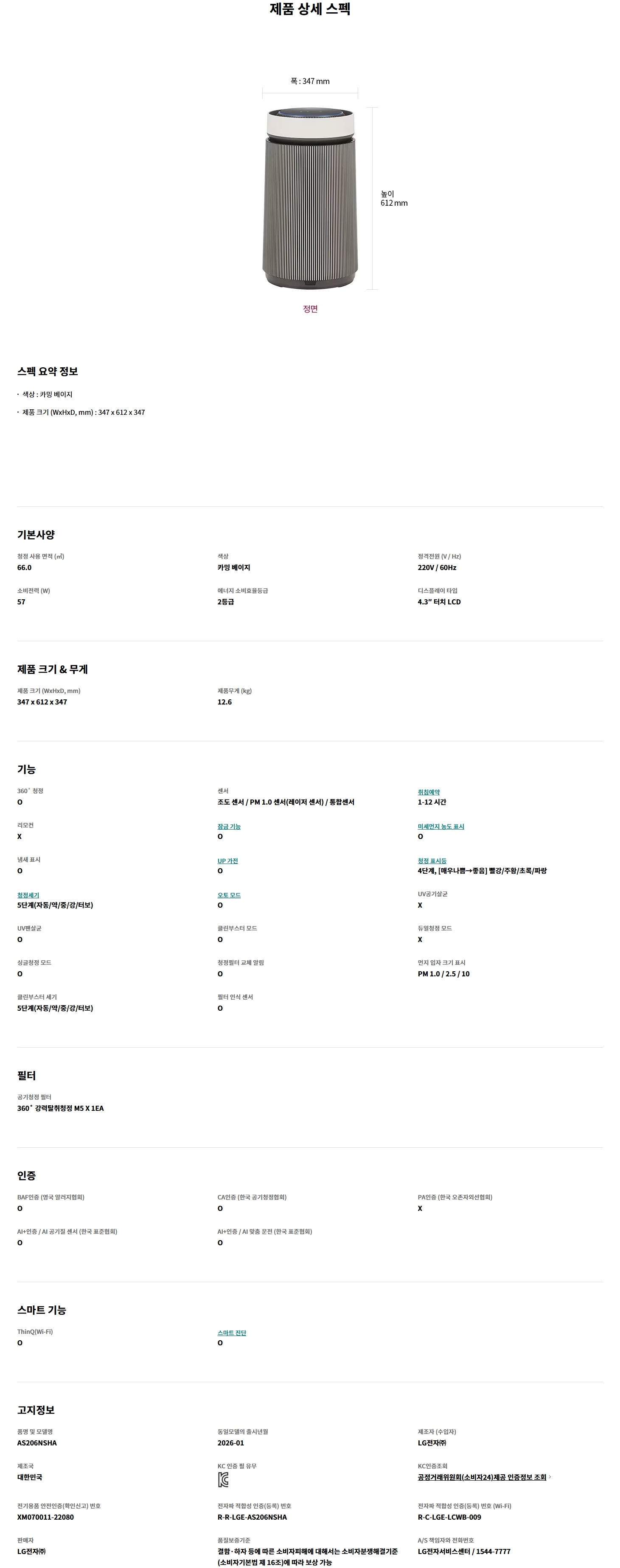 LG 퓨리케어 AI 오브제컬렉션 360˚ 공기청정기 M5