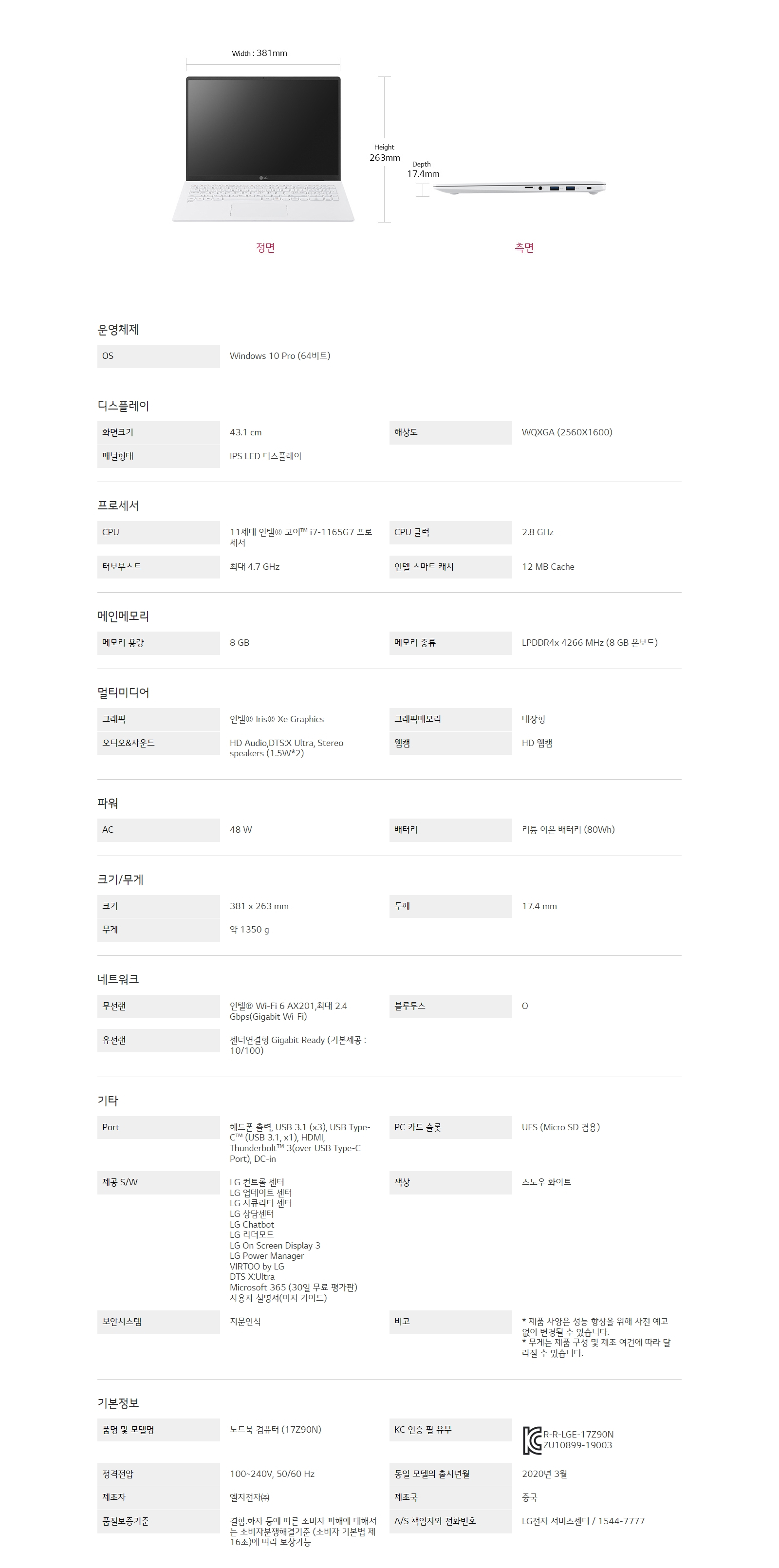 CPU : 11세대 인텔® 코어™ i7-1165G7 프로세서