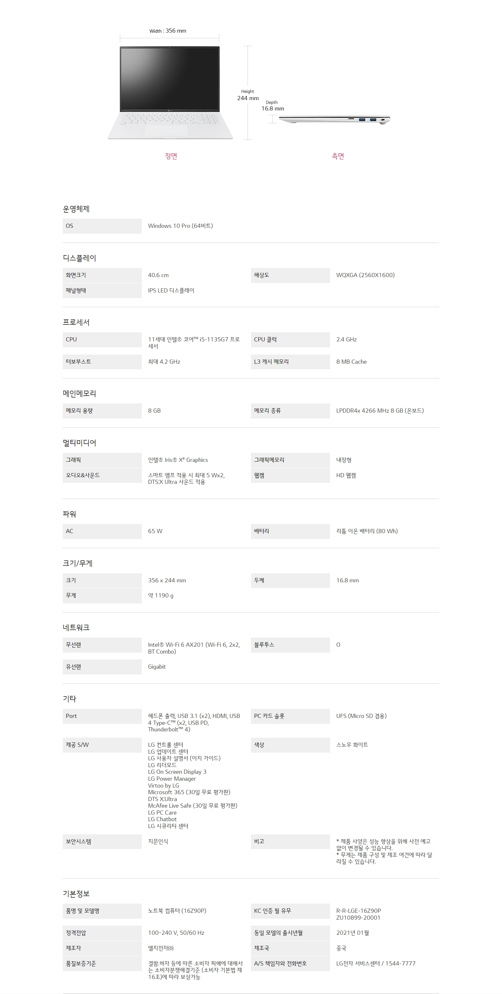 CPU : 11세대 인텔® 코어™ i5-1135G7 프로세서