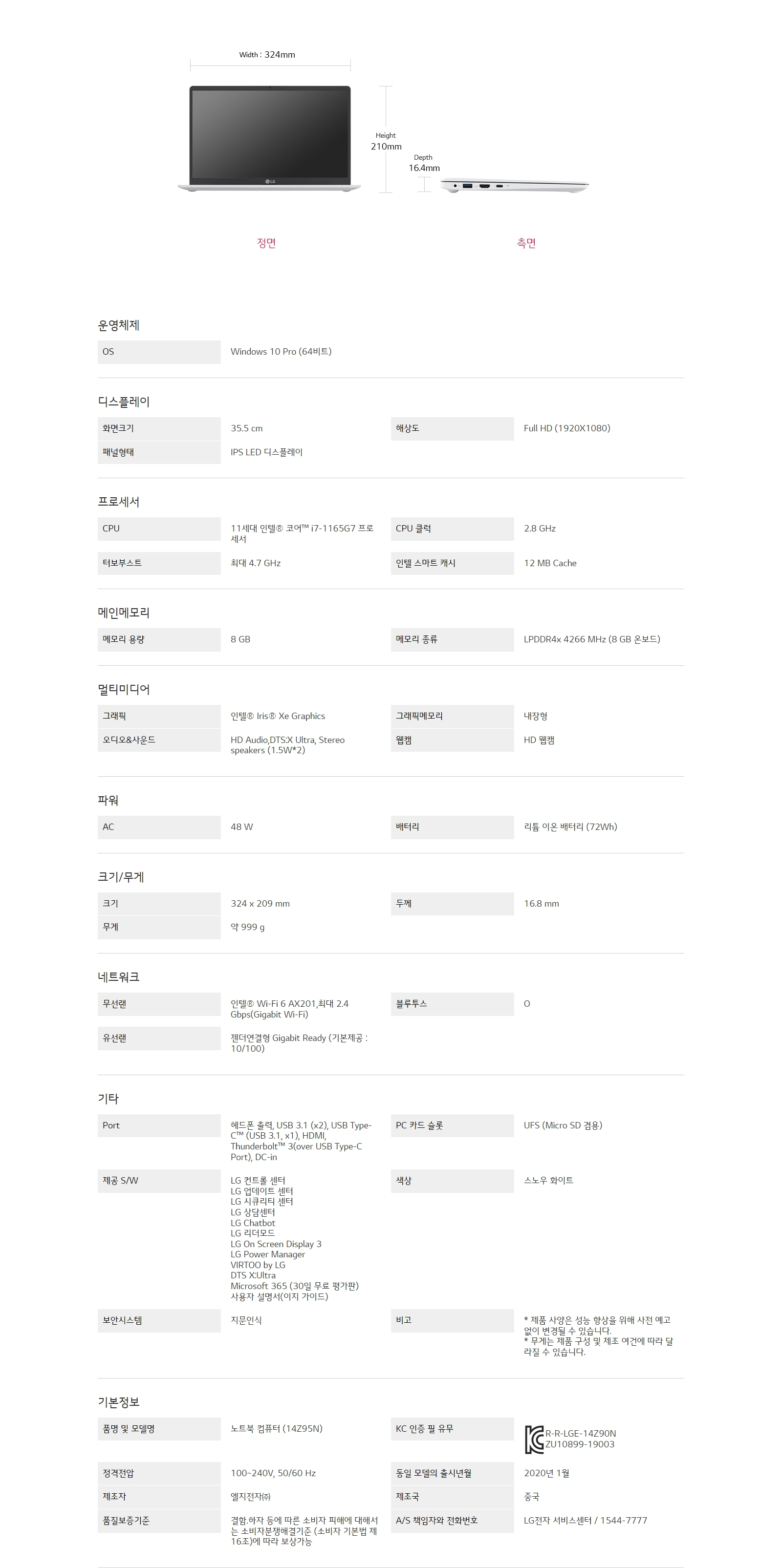 CPU : 11세대 인텔® 코어™ i7-1165G7 프로세서