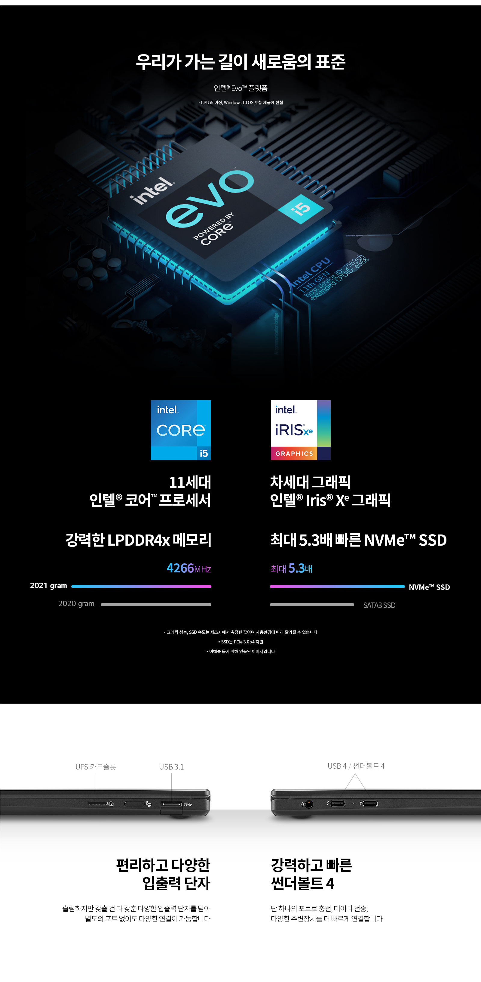 CPU : 인텔® Evo™플랫폼 11세대 인텔® 코어™ i5-1135G7 프로세서