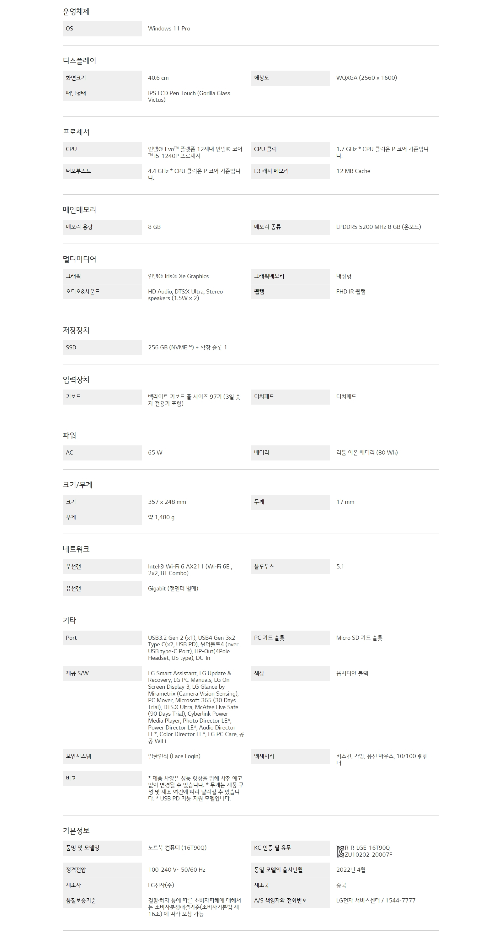 CPU : 인텔® Evo™플랫폼 12세대 인텔® 코어™ i5-1240P 프로세서