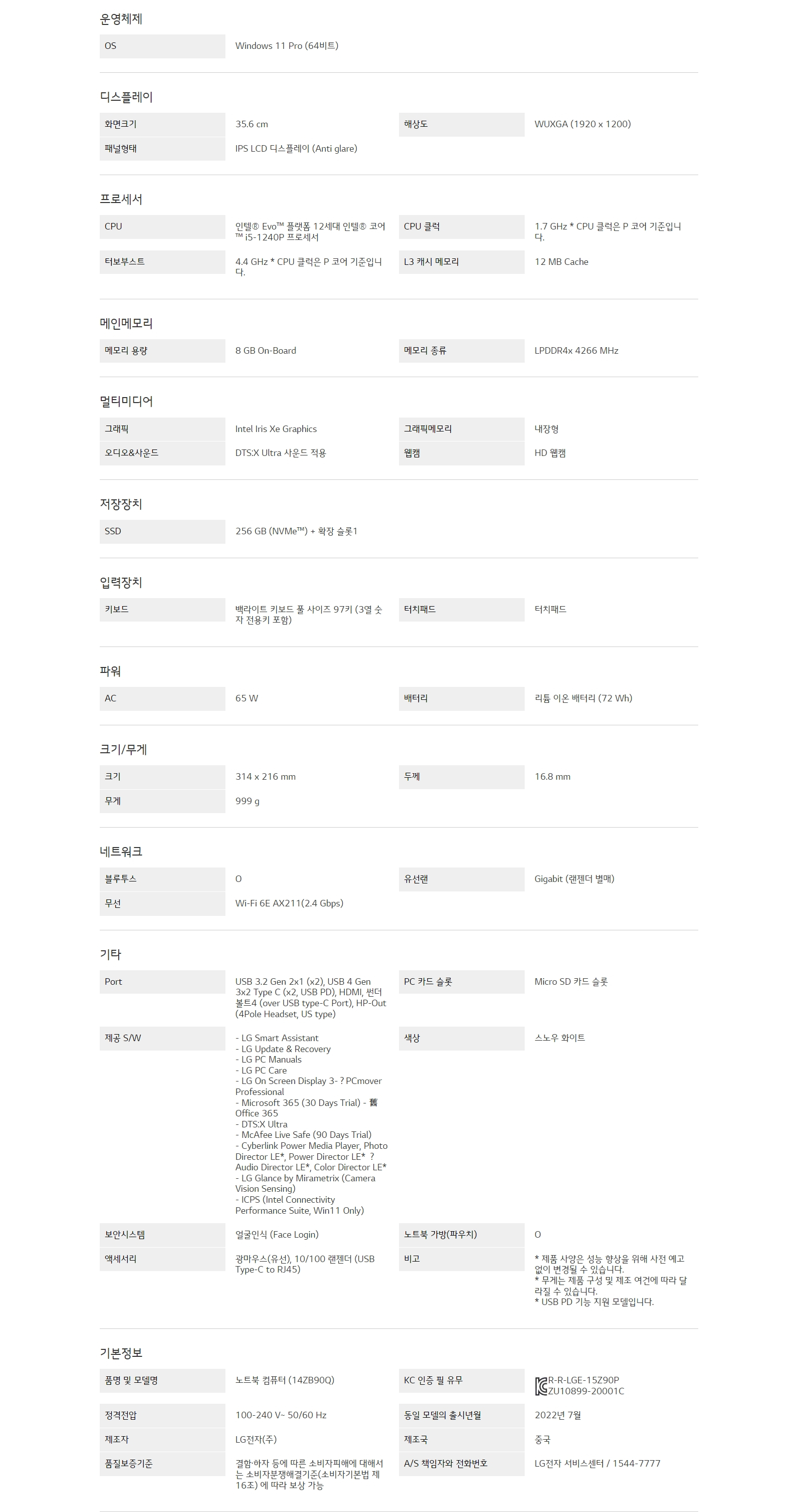 CPU : 인텔® Evo™플랫폼 12세대 인텔® 코어™ i5-1240P 프로세서