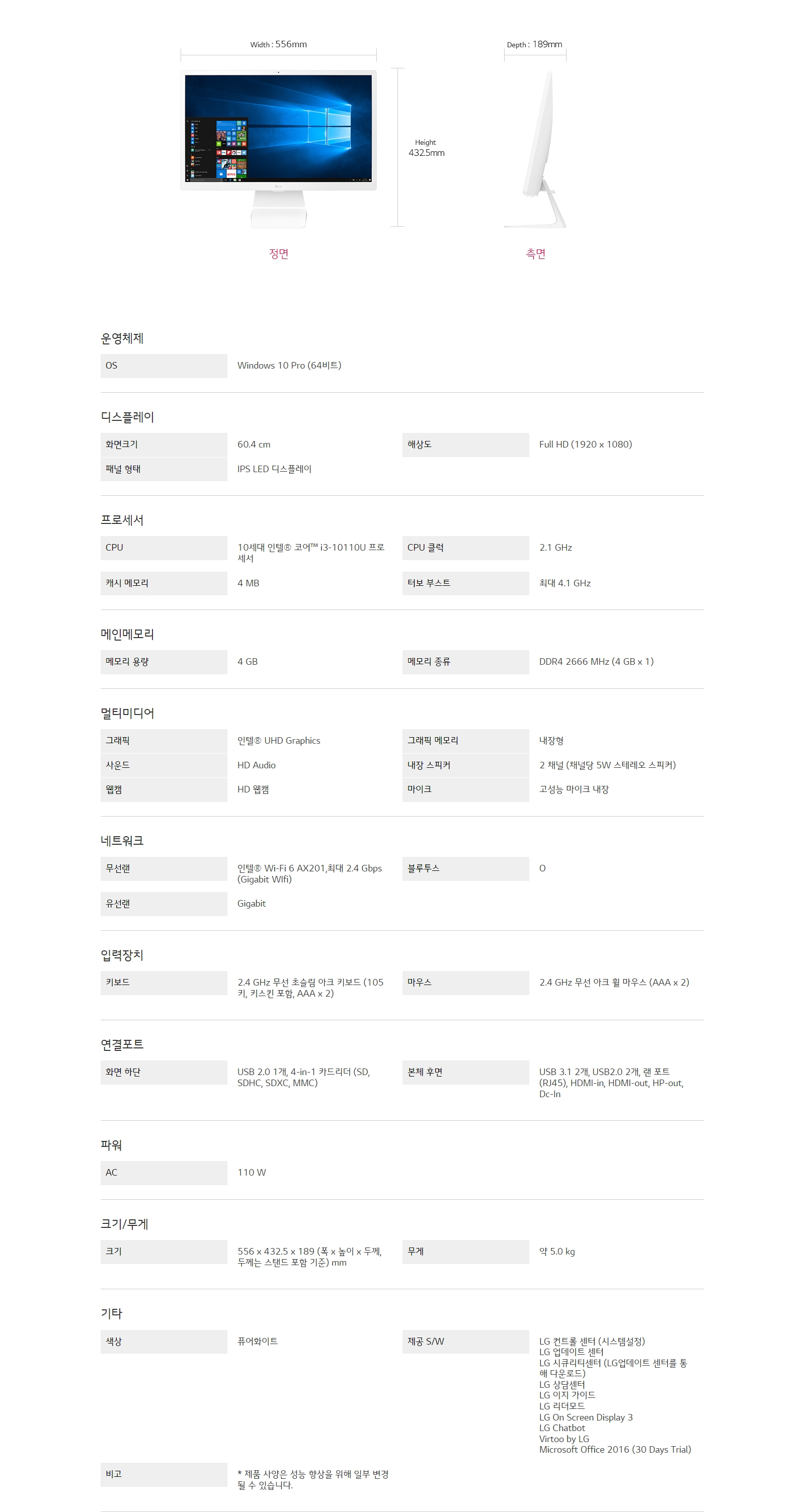 CPU : 10세대 인텔® 코어™ i3-10110U 프로세서