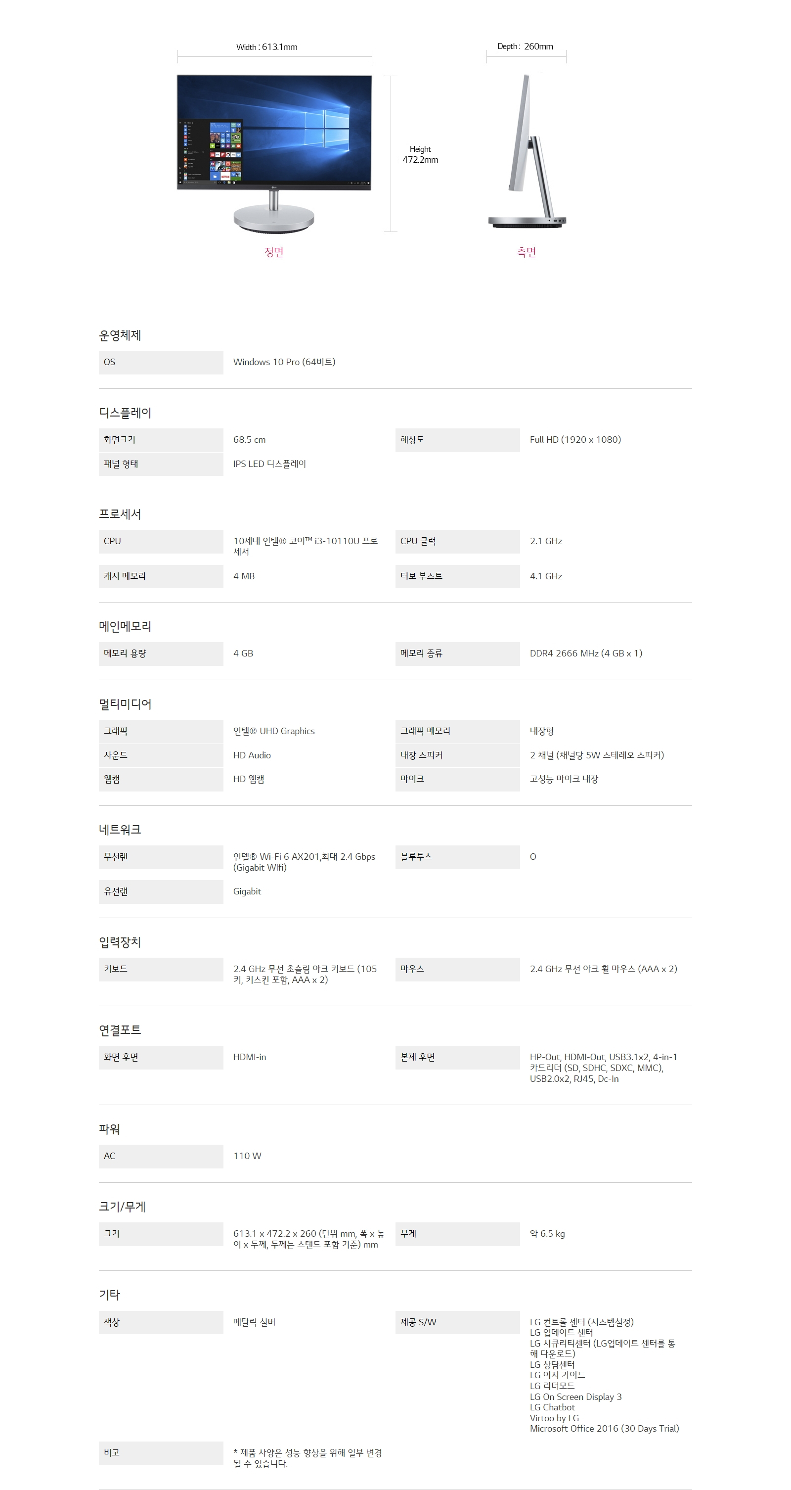 CPU : 10세대 인텔® 코어™ i3-10110U 프로세서