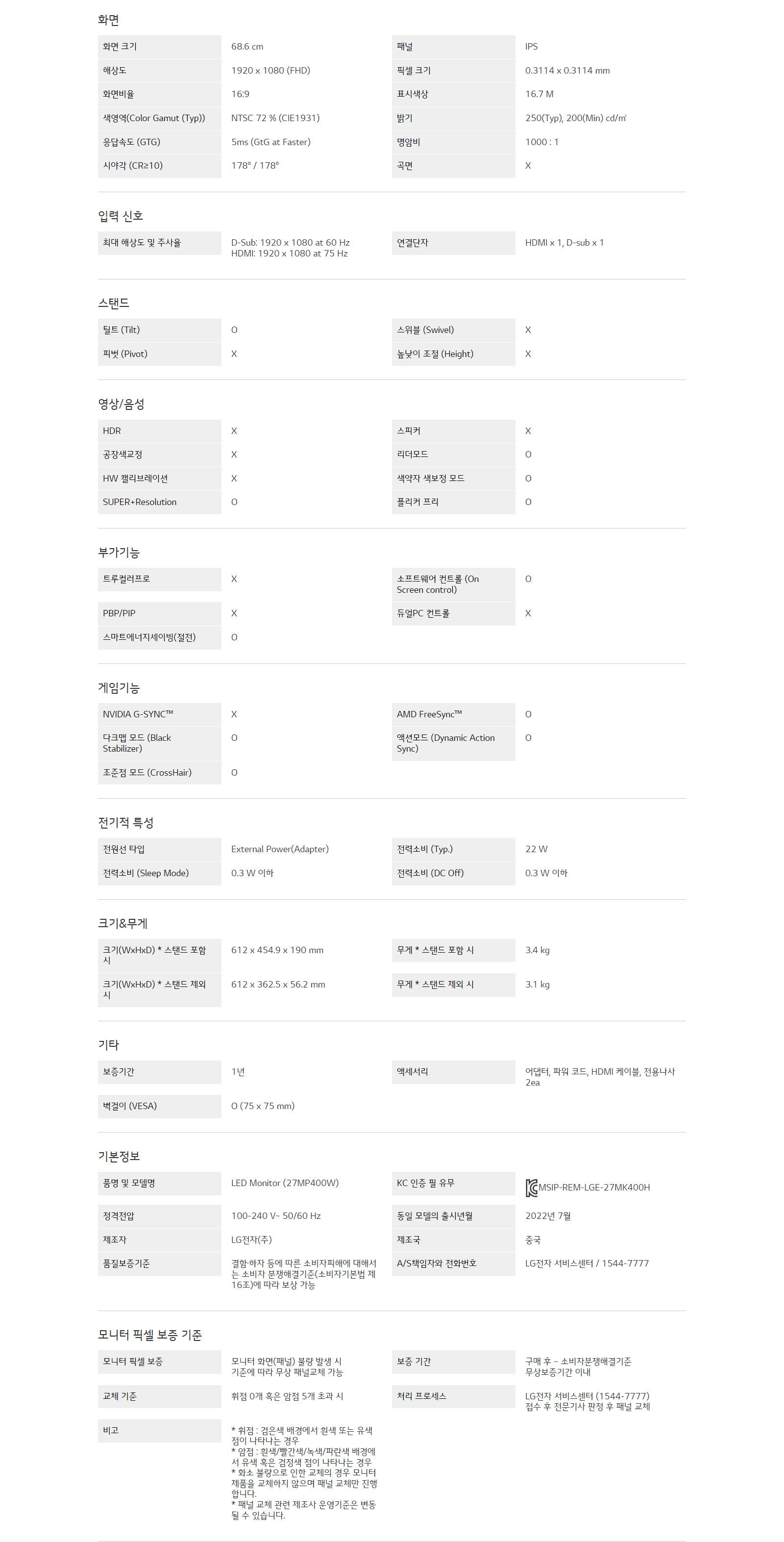 화면크기 : 68.6 ㎝
