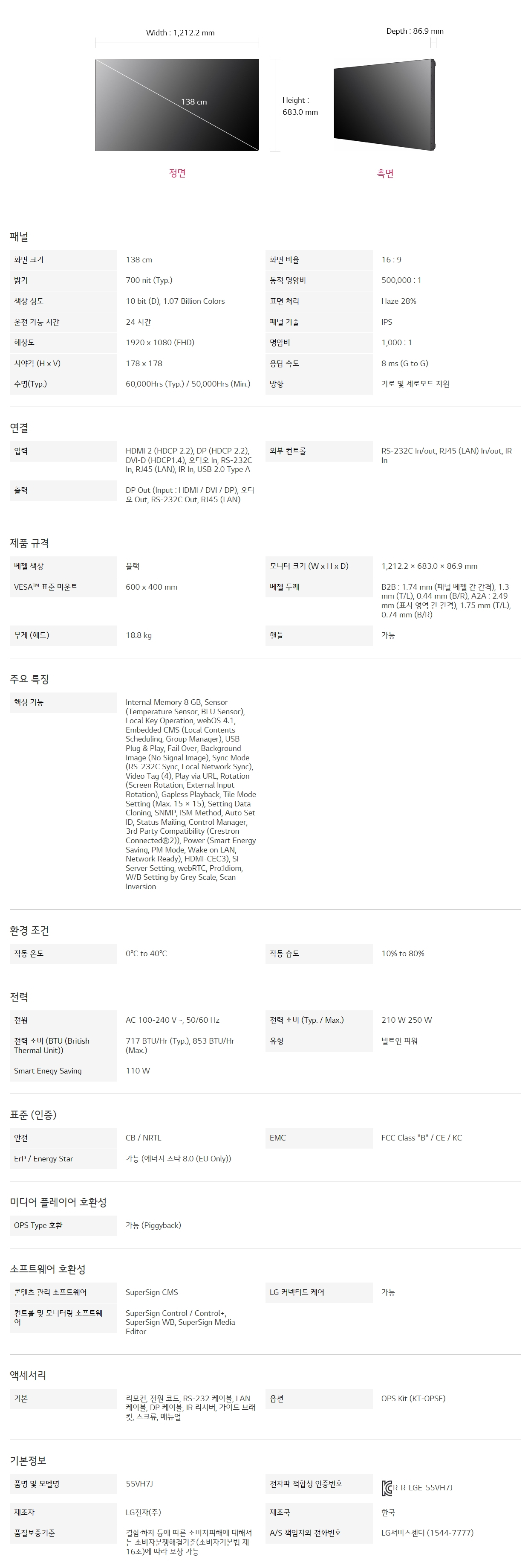 밝기 : 700 nit(Typ.)