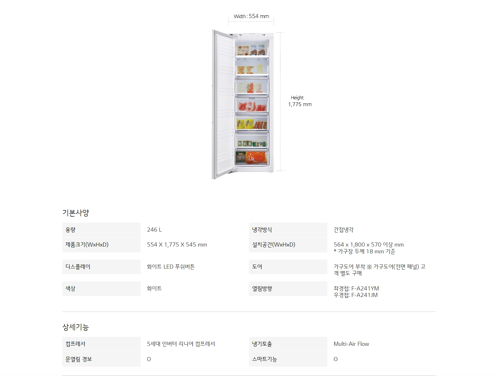 제품크기(W×H×D) : 554×1,775×545 ㎜