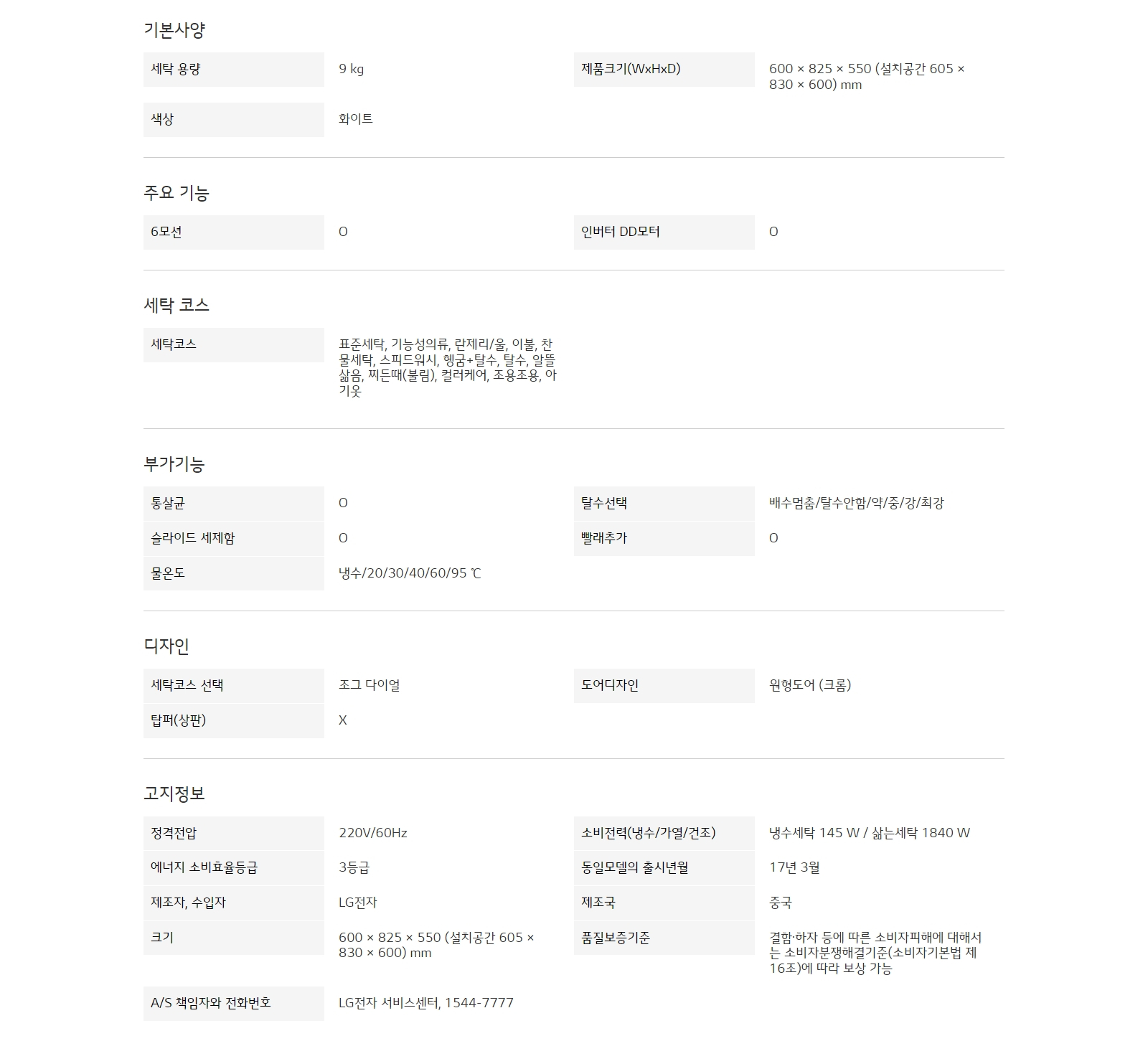 세탁용량 : 9㎏