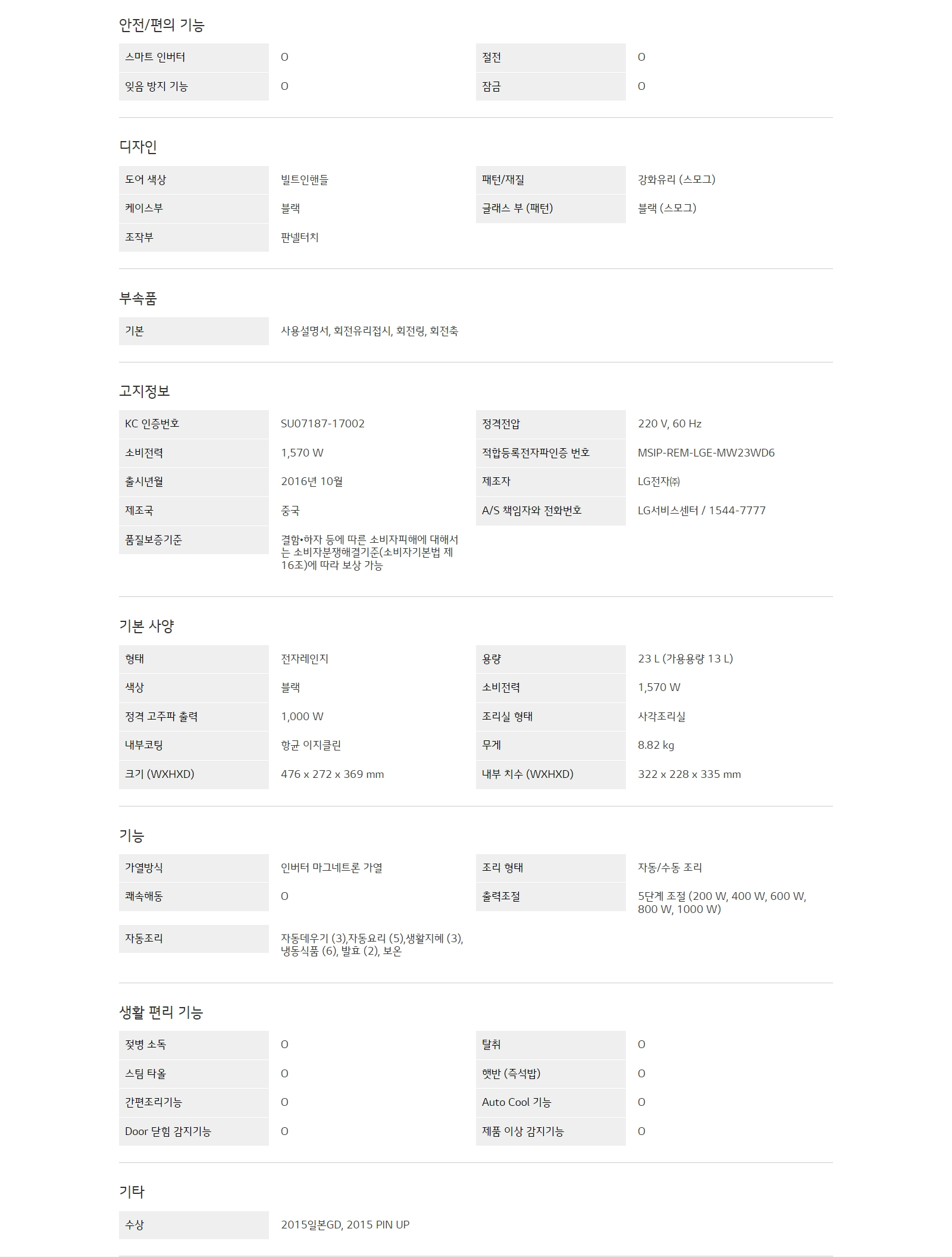 용량 : 23 ℓ (가용용량 13 ℓ )