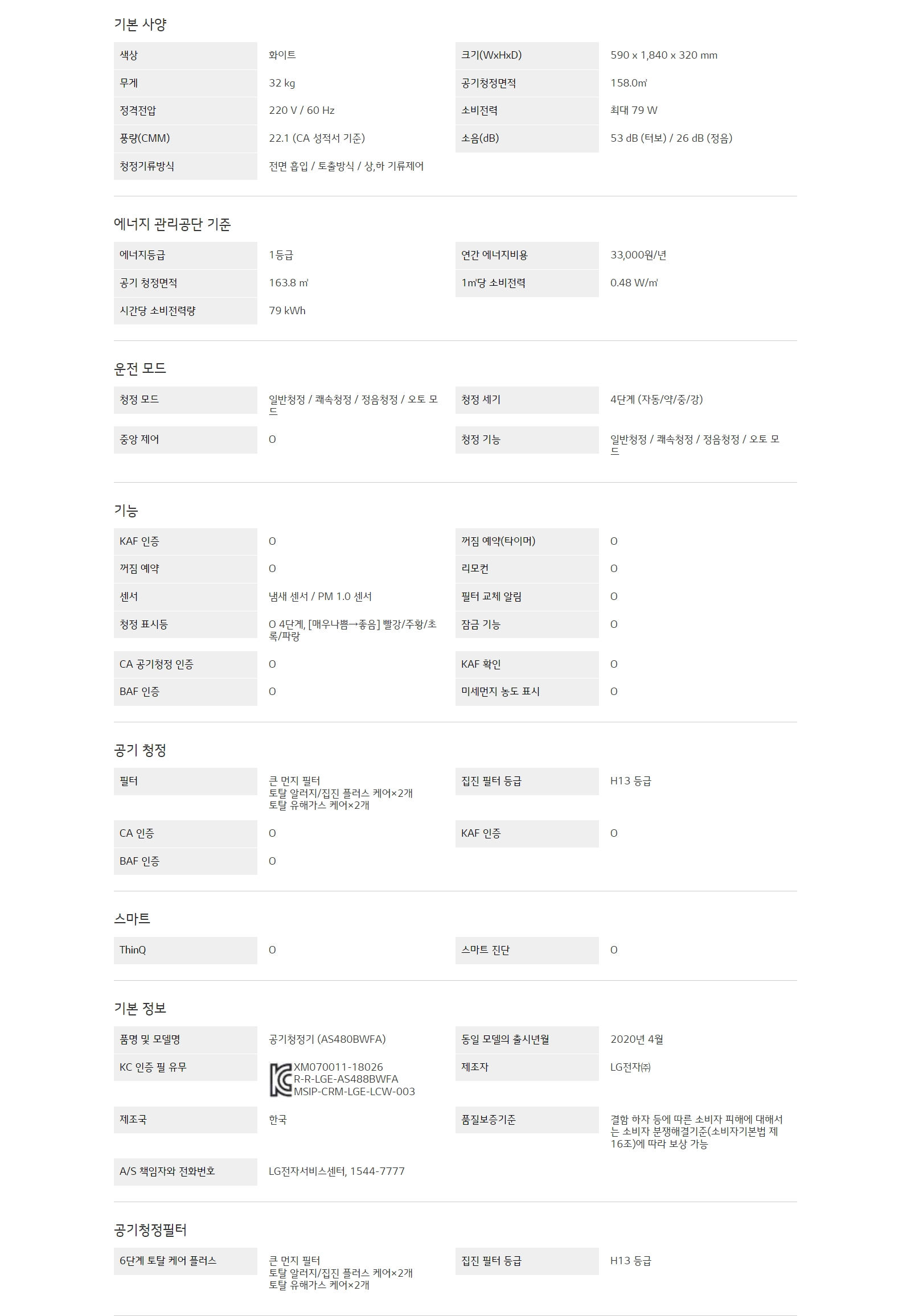 공기청정면적 : 158.0 ㎡