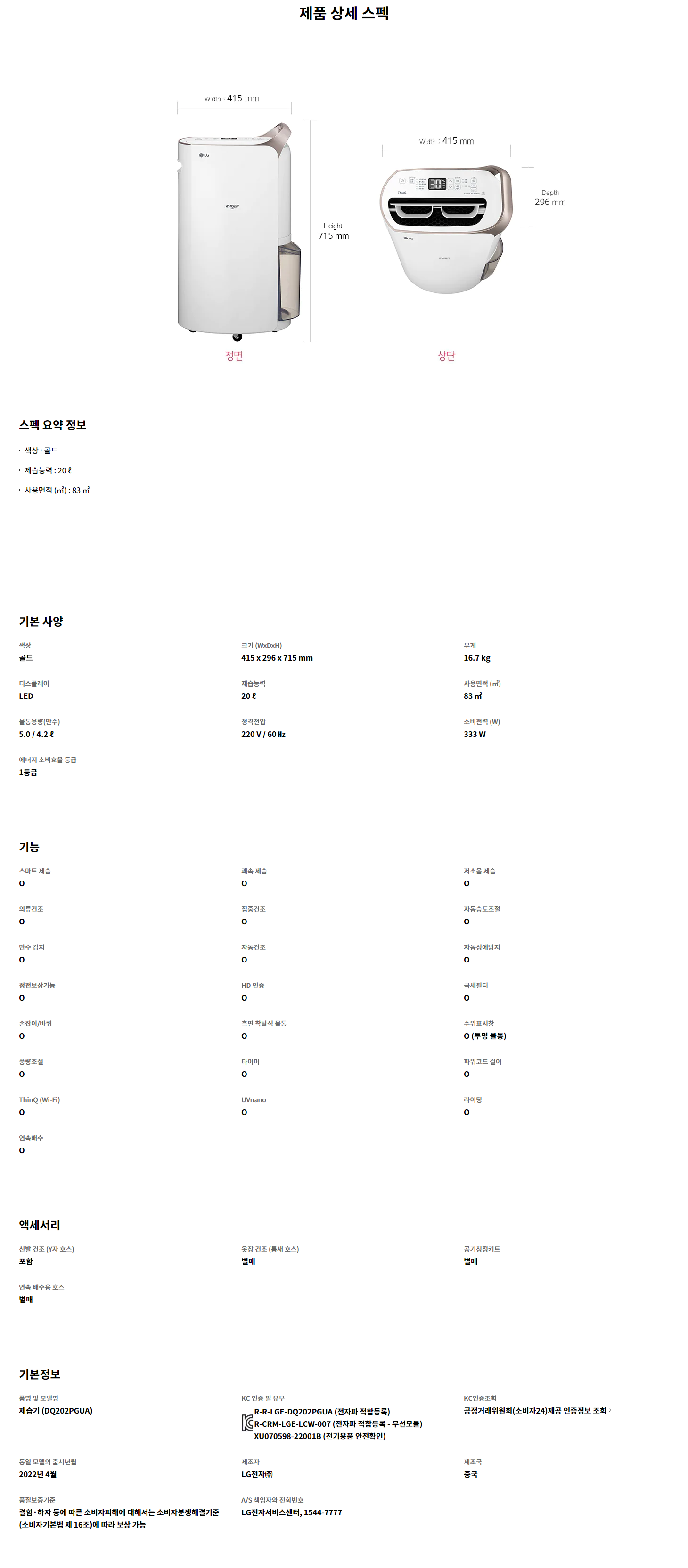 제습능력 : 20 ℓ