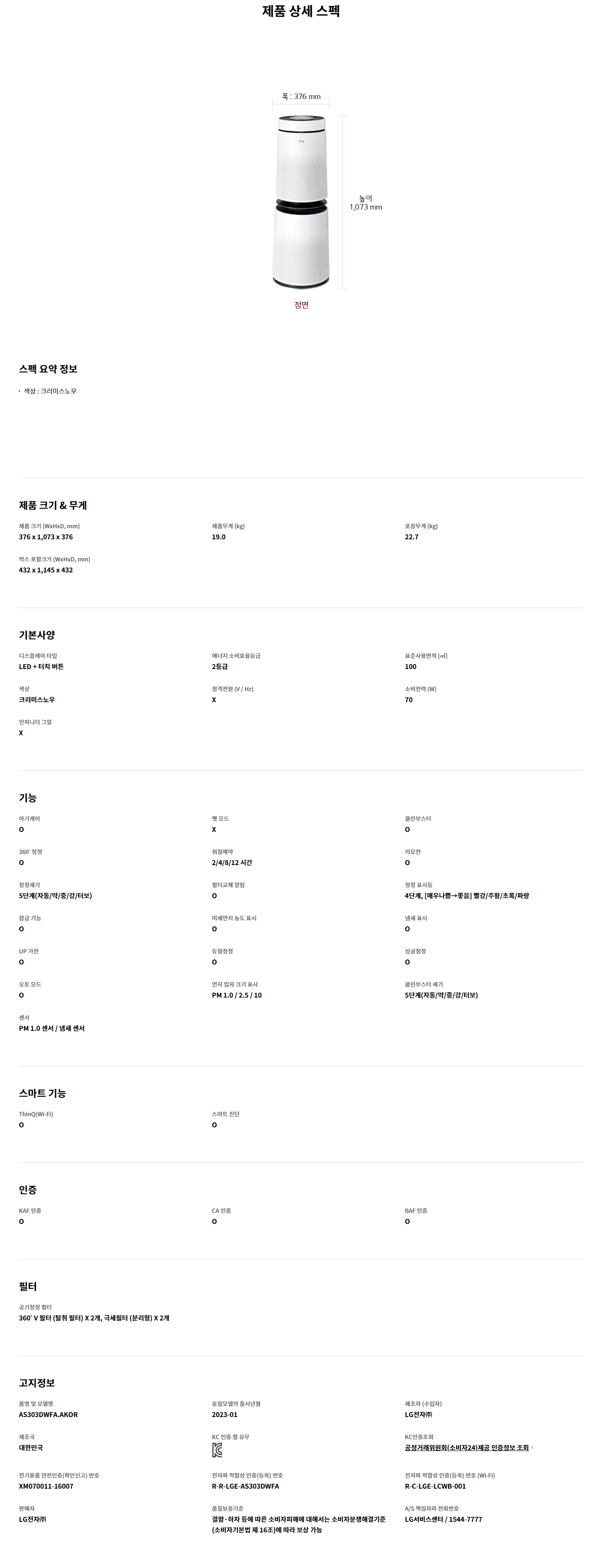 공기청정면적 :  100 ㎡