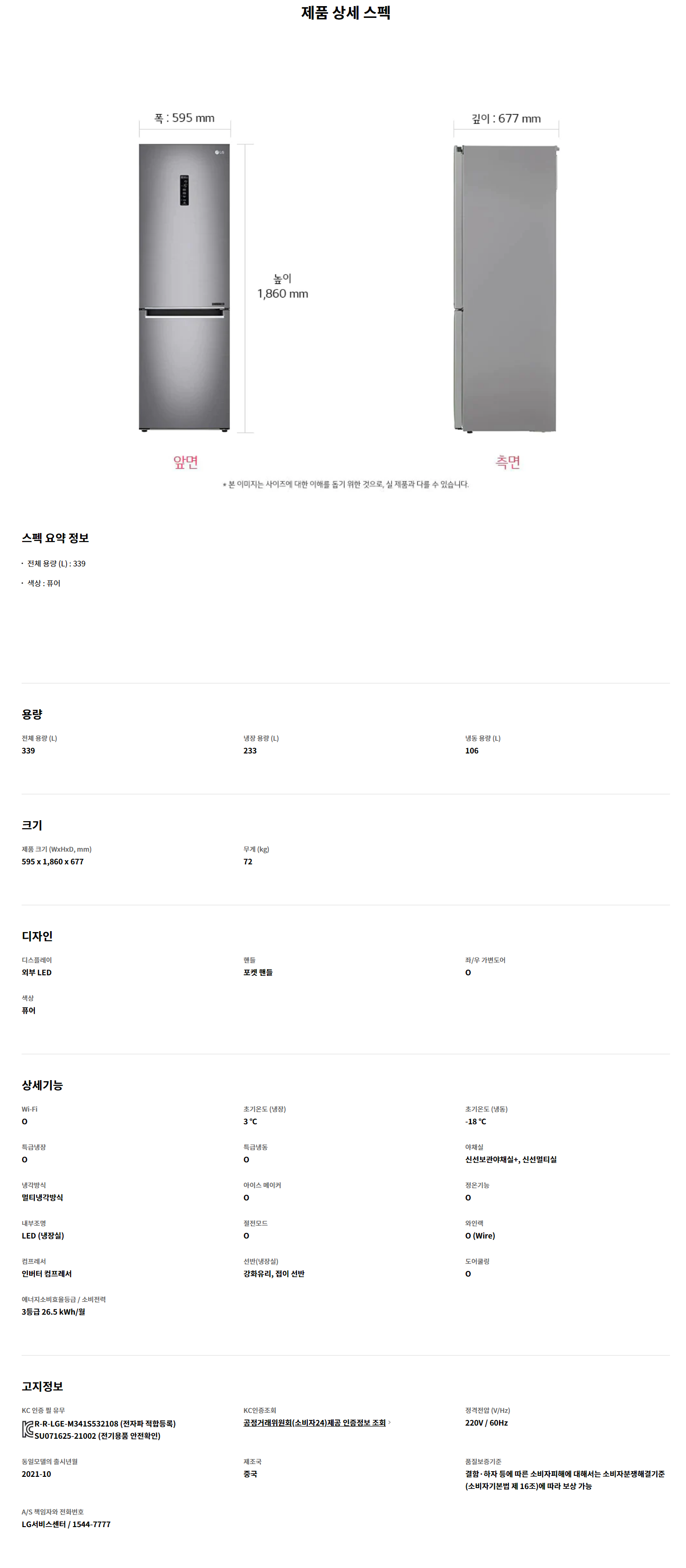 총용량 : 339 ℓ (냉동 106 / 냉장 233)