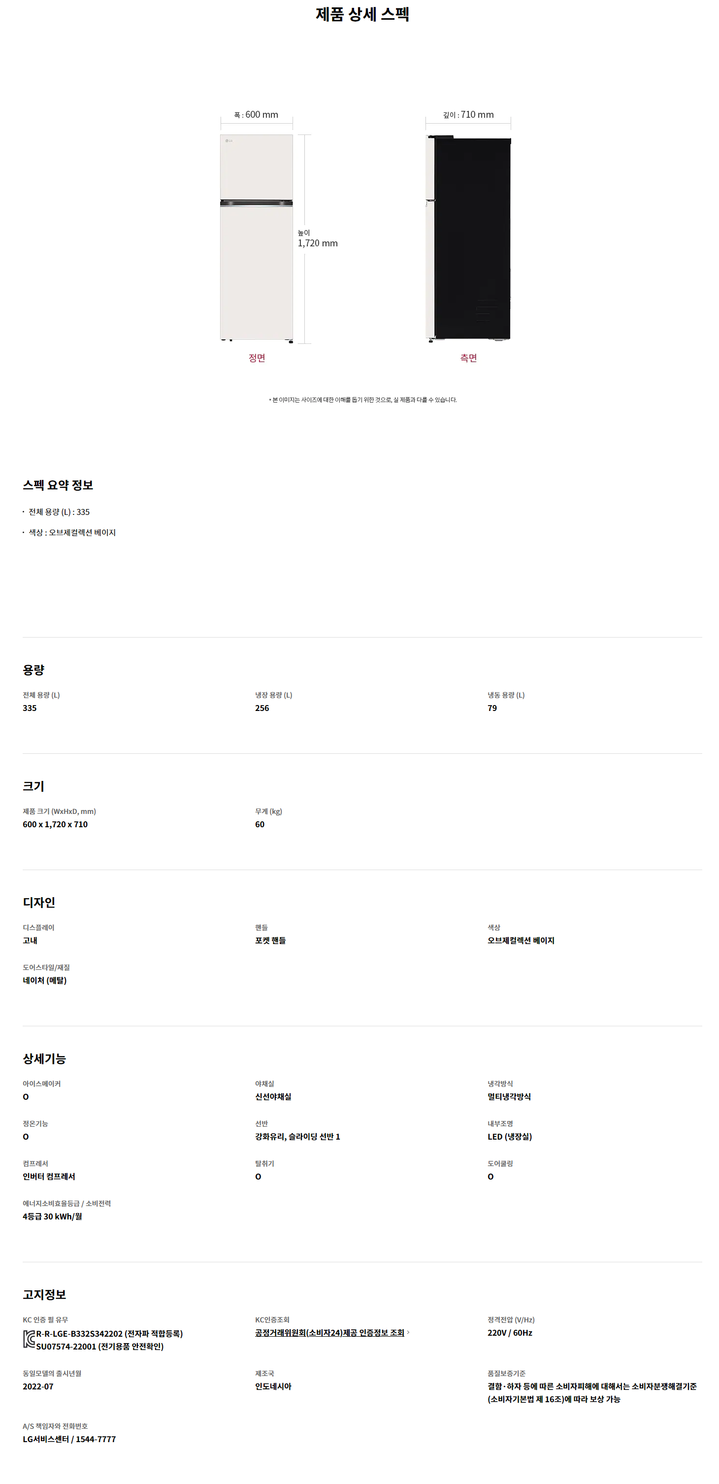 전체용량 : 335ℓ