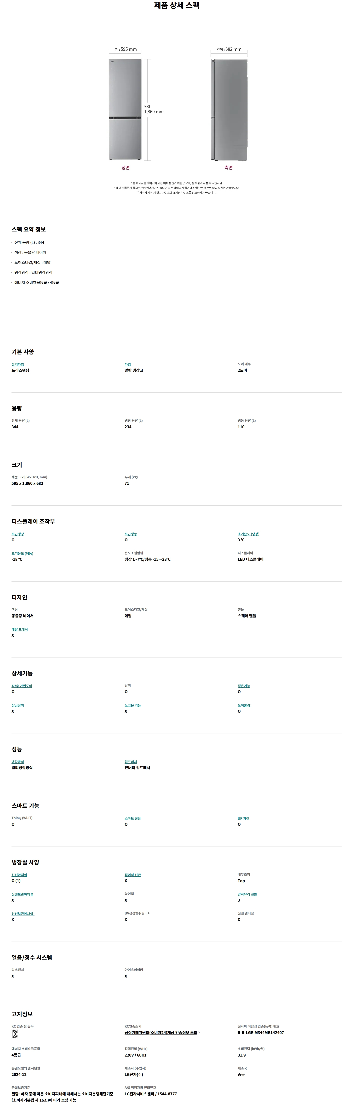 총용량 : 344 ℓ (냉동 110 / 냉장 234)
