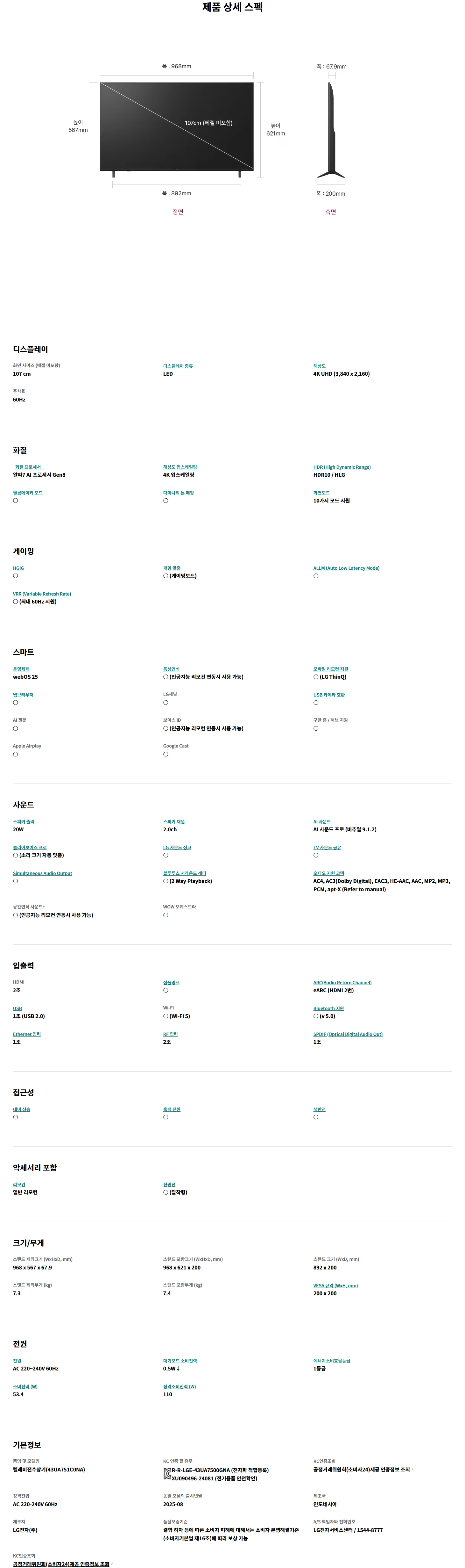 43UA751C (스탠드/벽걸이)